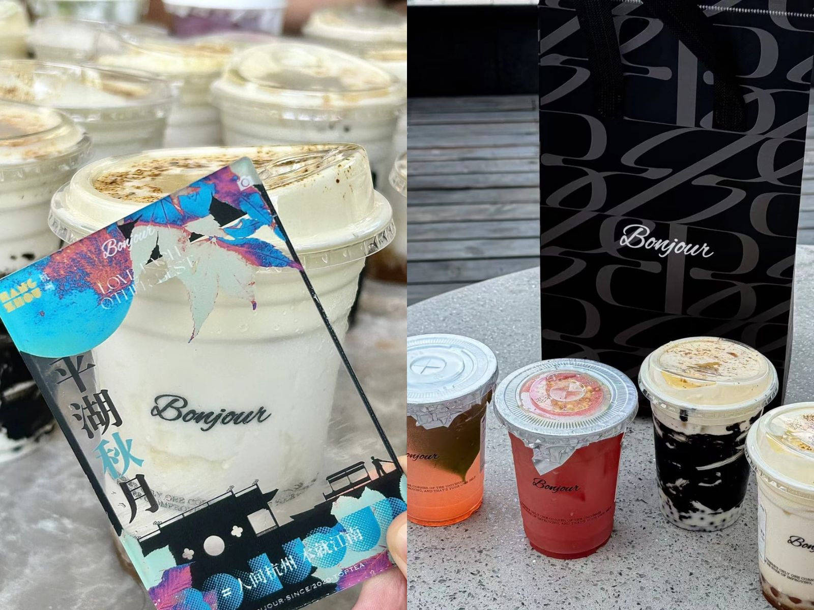 據了解,Bonjour(本就茶飲)是蘇州本土品牌,創立於2020年,主打「無茶底」的鮮牛乳茶飲,代表產品是「浮雲鮮牛乳」和「黑金芝麻牛乳」。品牌創立以來在蘇州當地受到歡迎,被稱為「蘇州之光」、「蘇州奶茶天花板」。