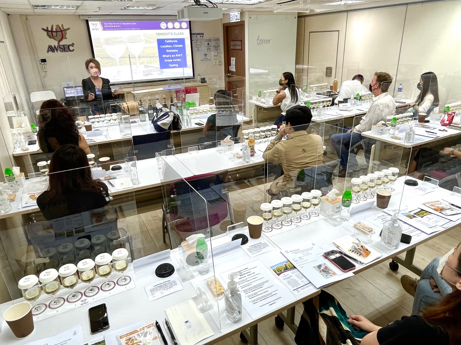 AWSEC主要教授葡萄酒與烈酒教育基金會(WSET)葡萄酒、清酒和烈酒課程,AWSEC市場部經理Andrew及客戶服務經理Jan表示,WSET葡萄酒一直深受歡迎,「這個課程分一至四級,一級課程屬於入門級,學習葡萄酒的基本知識,如儲存葡萄酒的技巧及侍酒方式,適合餐飲或零售行業新人報讀。二級課程涵蓋所有酒精類飲品的廣泛知識,包括葡萄品種、主要產酒國、葡萄栽培、釀酒過程及品酒技巧等,三級課程則會更強化二級課程的知識,而第四級課程是學習世界上所有酒類,包括葡萄生長過程、如何製作葡萄酒、葡萄酒生意營運模式等,學生必須獲得擁有WSET三級葡萄酒高級證書或WSET三級葡萄酒及烈酒高級證書」。Andrew及Jan補充,全中國只有三間中心提供四級課程,AWSEC每年才開班兩次,所以學生要留意開班日期。