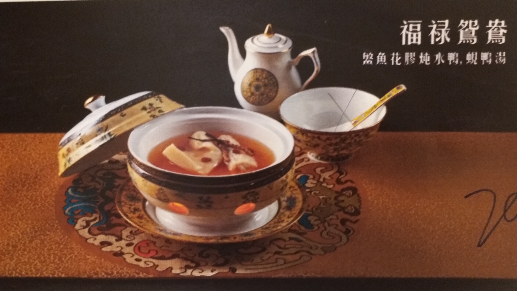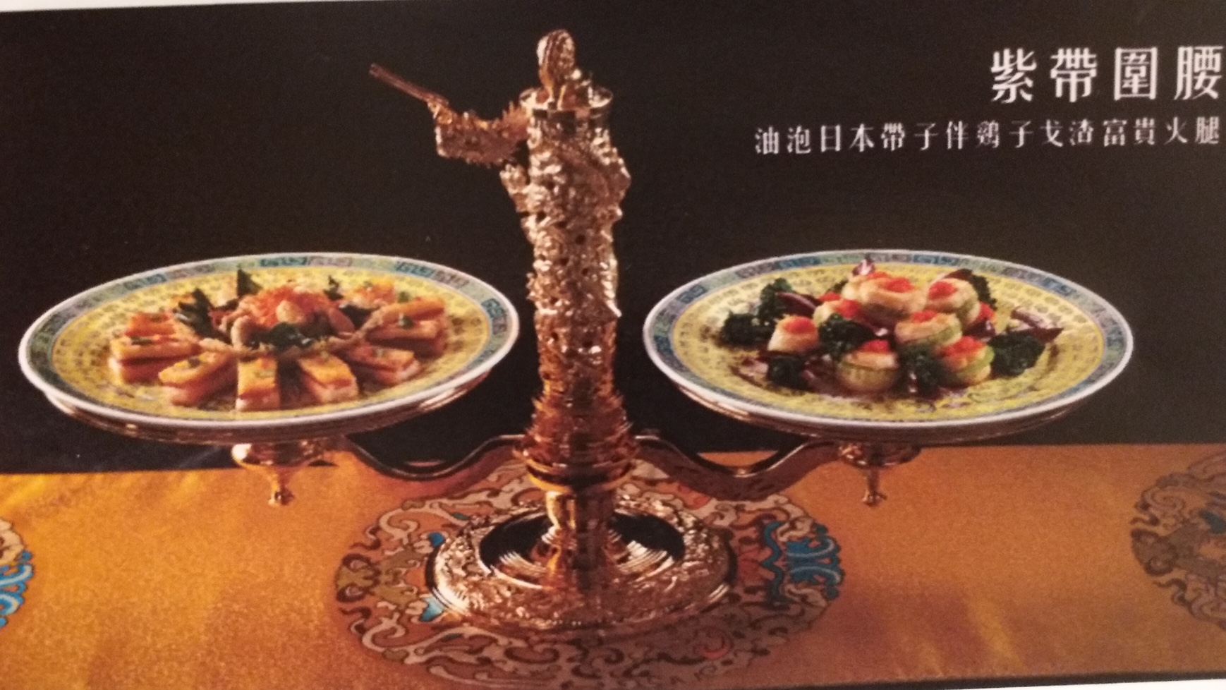 滿漢全席菜式有鹹有甜,有葷有素,取材廣泛,用料精細,山珍海味無所不包,確是非常考廚師的技藝。而是次「精裝滿漢筵席」邀請到貴賓坐鎮,他便是中國御膳大師、皇家滿漢全席第三代傳人的齊金柱師傅,有見他來臨現場支持及鼓勵。